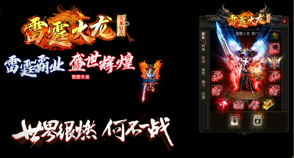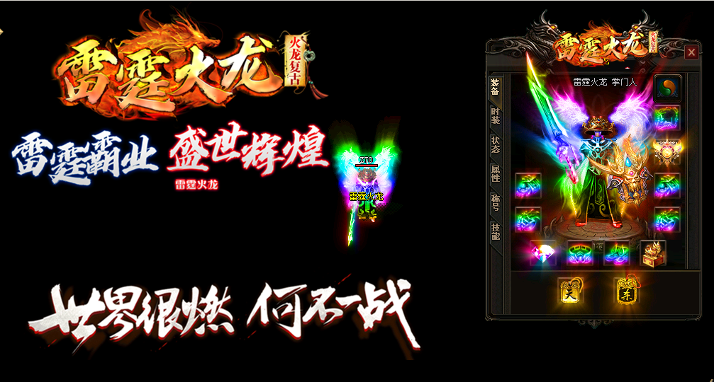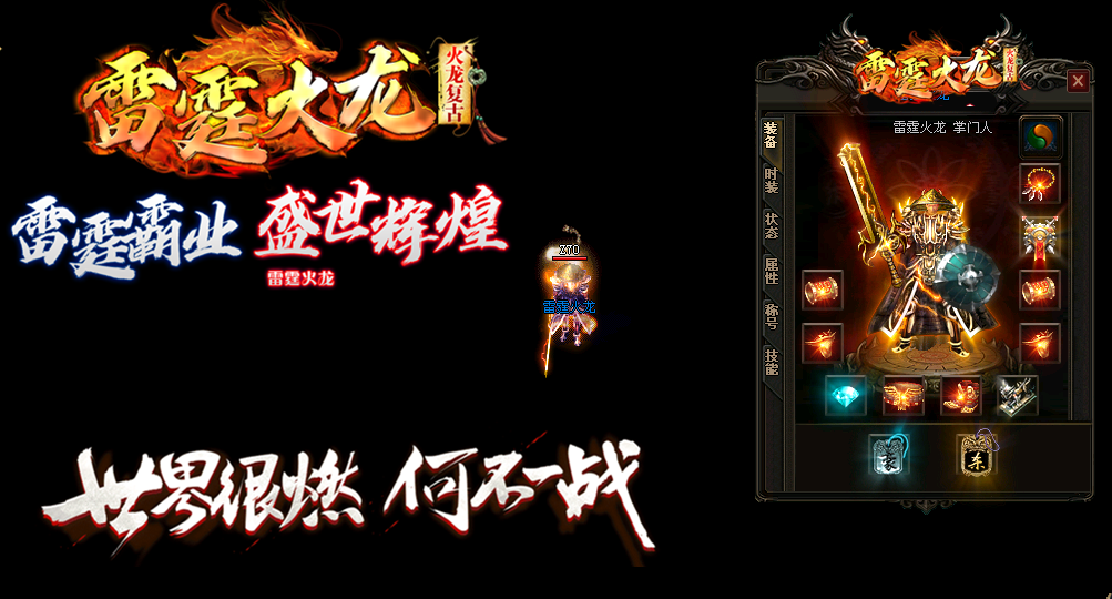 【装备介绍】:雷霆、战神、火龙、火龙杀神、火龙至尊、火龙逆天,所有装备全部靠爆,无合成,玩法新颖,独家巨作